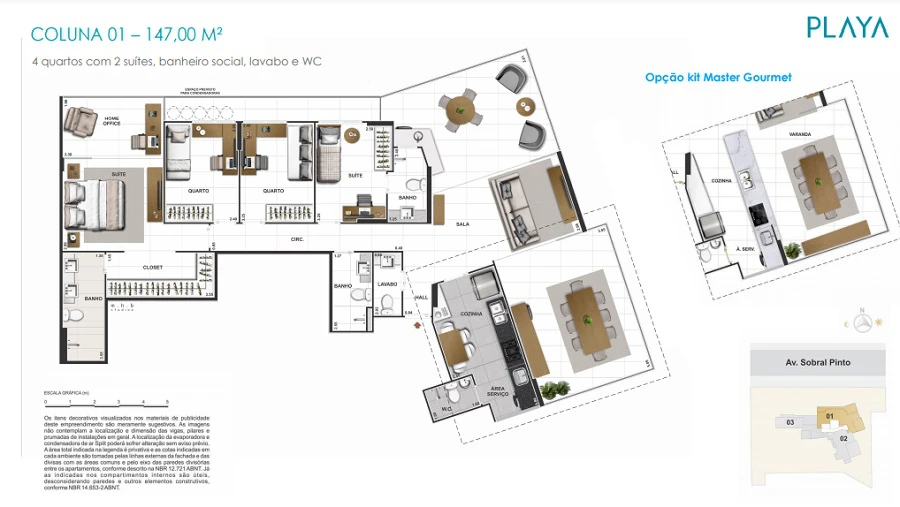 Apartamentos de 4 quartos com 147m², sendo 2 suítes.
